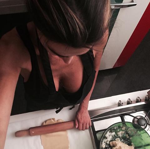 La Capriotti si esprime così in un paio di scatti tra mattarelli e lasagne. L’inquadratura è strategica: dall’alto, per mettere in bella mostra il décolleté.