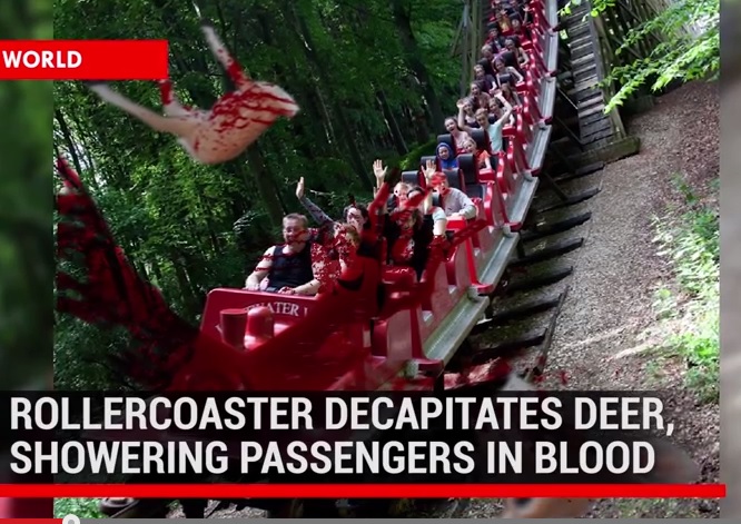 LONDRA – Un vagoncino delle montagne russe, le Lightwater Valley a Ripon, ha decapitato un cervo durante la sua corsa. I passeggeri a bordo, sotto choc, sono stati ricoperti completamente di sangue.