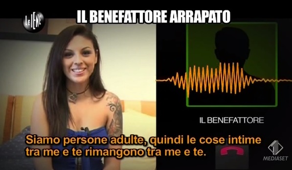 Protagonista del reportage di Italia 1 è Michela, aspirante attrice, che si è rivolta alla Iena Agresti perché adescata da un “benefattore arrapato” che le promette fama in cambio di sesso: “Se andiamo in albergo ti faccio fare un casting”, le avrebbe detto l’uomo incontrato ad un evento benefico di calcio. E ancora: “Con un lato B di queste proporzioni con me non avrai problemi”. Infine, esplicito: “Ti porto a fare servizi fotografici, la notte dormiamo insieme, questo è il mio modo di lavorare. Io ti do, se tu mi dai”.