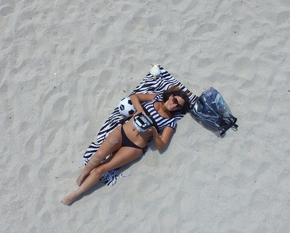 Tecnologia alla mano, Claudia Romani, fotografa le sue curve dall’alto grazie al supporto di un drone. La modella mette in primo piano seno e sedere con la solita naturalezza che la contraddistingue.
