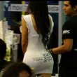 A dirigere la conferenza Eduardo Zepeda che parlando con i presenti si è lasciato scappare qualche battuta sessista di troppo dicendo che “una volta sfruttate le debolezze di una ragazza si possa avere libero accesso al sistema”. Non solo. Accanto a lui non è sfuggita poi la presenza di un’avvenente hostess con un vestito aderente e che, sul lato B, presentava un gigantesco codice QR, con tanto di indicazione Registrati e vinci.