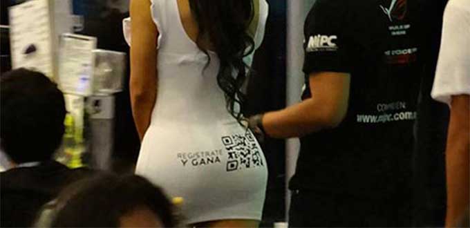 A dirigere la conferenza Eduardo Zepeda che parlando con i presenti si è lasciato scappare qualche battuta sessista di troppo dicendo che “una volta sfruttate le debolezze di una ragazza si possa avere libero accesso al sistema”. Non solo. Accanto a lui non è sfuggita poi la presenza di un’avvenente hostess con un vestito aderente e che, sul lato B, presentava un gigantesco codice QR, con tanto di indicazione Registrati e vinci.