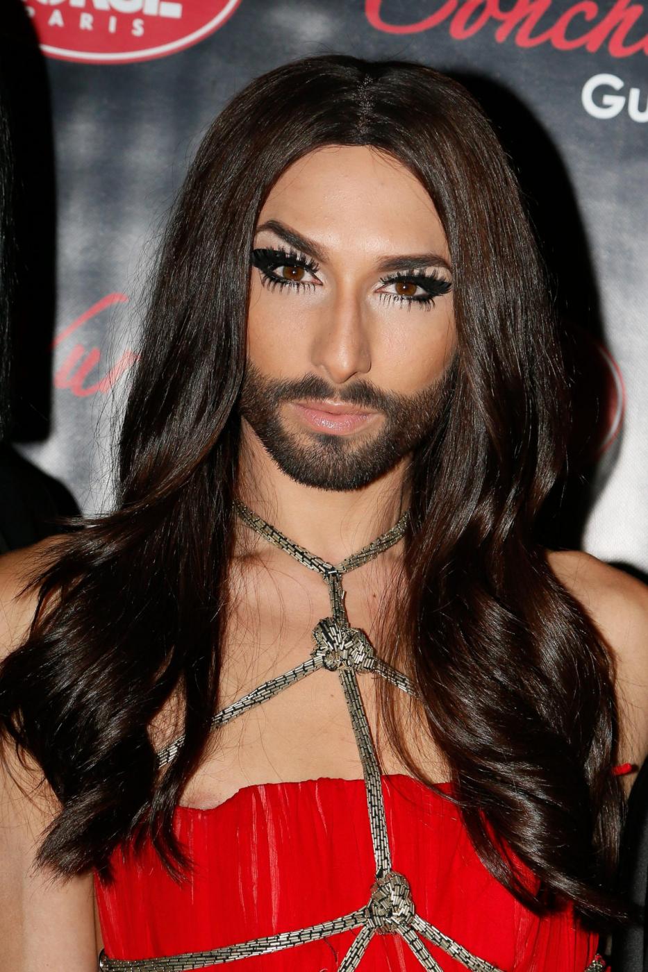 Li, la star austriaca interpreta tre canzoni ed è accompagnata dalle sensuali ballerine del locale (tra cui le due italiane, Gloria di Parma, nome di scena di Deborah Lettieri, e Ann Atomic, alias Giulia Pauselli). Sulle note di ‘Rise Like a Phoenix’, la canzone dell’Eurovision, diventa una regina su un trono rosso in bustier dorato e seni a cono circondata da un harem di ragazze in topless, anche loro con la barba. E’ una romantica bambolina in tutù rosa mentre canta il nuovo singolo del prossimo album (in preparazione), ‘Heroes’, o ancora una pin-up in miniabito di strass oro e argento che le scopre le lunghe gambe su una canzone di Tina Turner ‘River deep mountain high’. E per il gran finale rimane nuda con solo una finta barba nera a coprire le parti intime. “Parigi è la città dell’amore, sinonimo di sensualità e donne eccezionali – ha detto Conchita, pseudonimo di Thomas Neuwirth, nato a Gmunden, un paesino dell’Austria, 25 anni fa -. Sono onorata di avere l’opportunità di vivere un’avventura glamour e formidabile”.