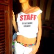 ROMA – Prima con magliettina attillata e pantaloncini corti, poi solo in bikini e shorts ed infine in topless, di schiena, con un piccante scorcio del seno.