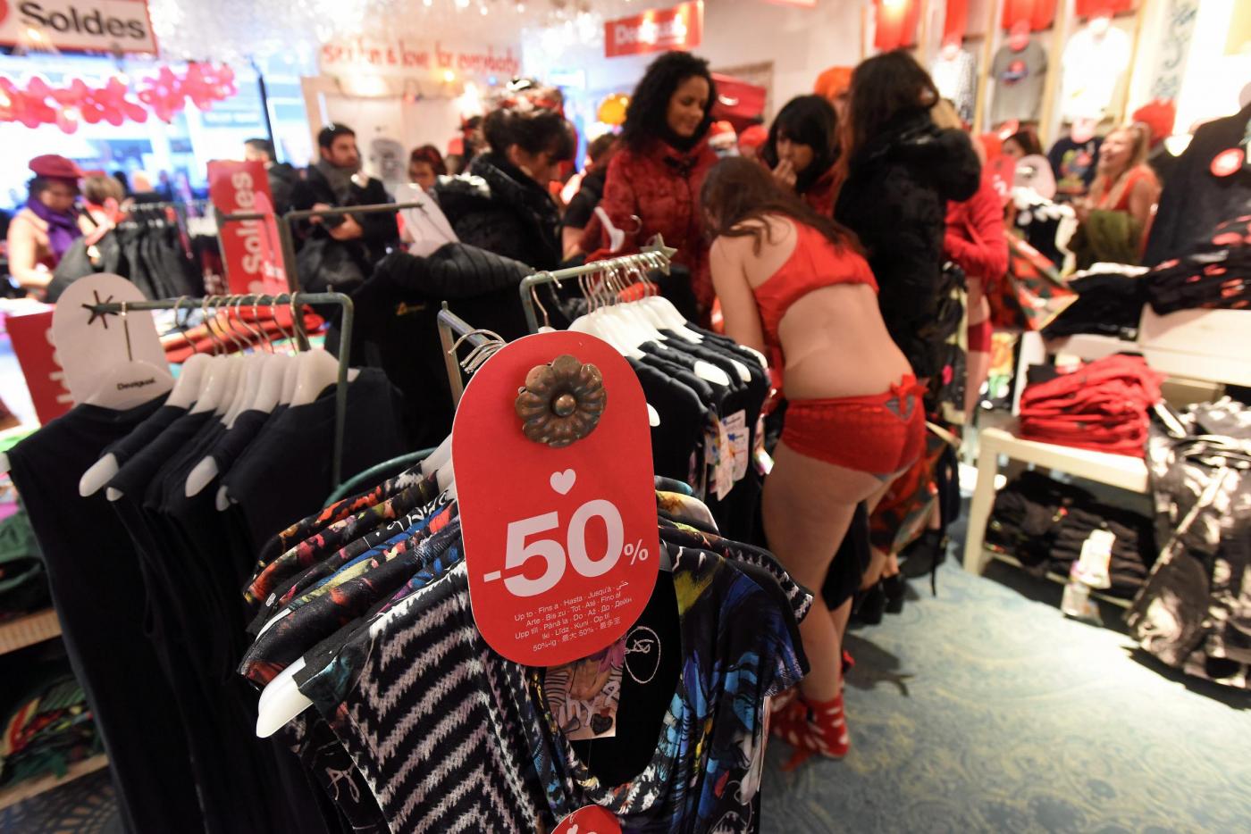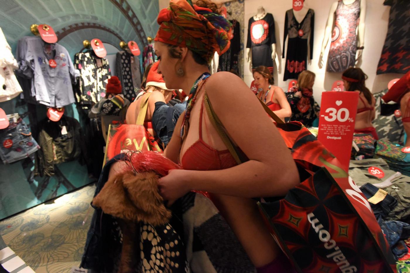 MILANO – Desigual ha festeggiato i saldi invernali con gli ormai famosi Seminaked party. Il noto marchio spagnolo, lunedì 5 gennaio ha vestito gratis le prime 100 persone entrate in biancheria intima rossa nei suoi negozi.