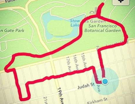 La donna di San Francisco, negli Stati Uniti, ha deciso di abbattere la noia della corsa disegnando delle particolari “opere d’arte”. L’aspirante artista ha usato il Gps e l’applicazione Nike+ per utilizzare le mappe come tele da dipingere.