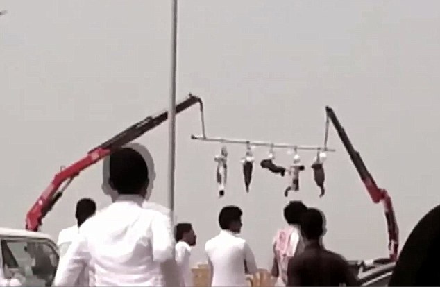 LONDRA – Cinque corpi pendono da un palo sospeso tra due gru in Arabia Saudita, una esposizione pubblica come promemoria per coloro che potrebbero prendere in considerazione una vita da criminali. Appartenevano a una gang di cinque ladri, decapitati pubblicamente prima che i loro cadaveri fossero issati in alto all’aperto, dove sono rimasti per giorni. La vista raccapricciante è una scena di uno scioccante documentario, che getta luce sulla vita in Arabia Saudita, uno dei paesi più sanguinosi e più riservati del mondo.