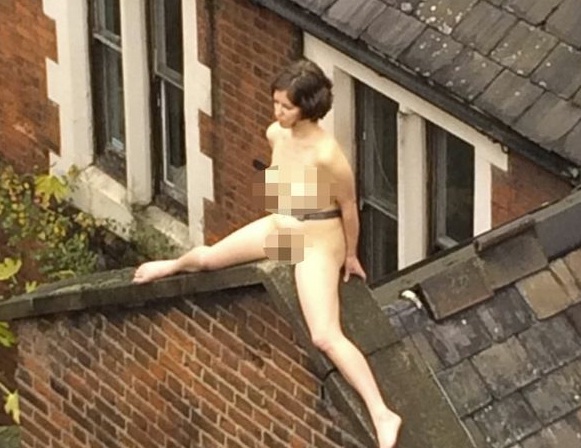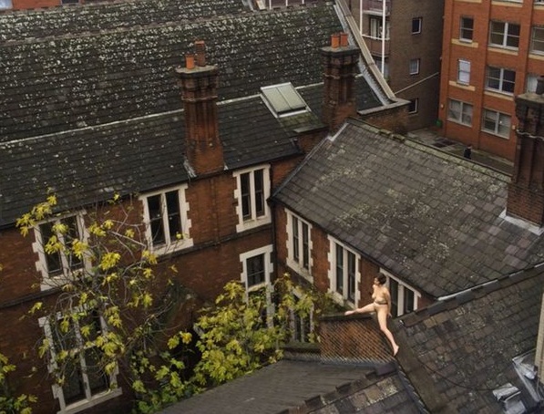 LONDRA – Una donna nuda su un tetto di Londra, affacciata sul quartiere vittoriano di Whichapel. A tutti i passanti e i lavoratori della zona è apparsa così: una giovane, piacente signorina svestita e con le gambe divaricate su un tetto. Ma era un’opera d’arte, installazione firmata dall‘artista britannica Poppy Jackson.