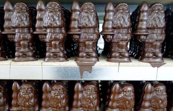 Dopo la distruzione del suo albero gonfiabile a Place Vendome, l’artista americano, 70 anni, ha installato una vera e propria fabbrica di cioccolato nelle sale barocche della Monnaie, sulla Senna, e ogni giorno sforna centinaia di figure non proprio tradizionali di Babbo Natale e abeti natalizi.