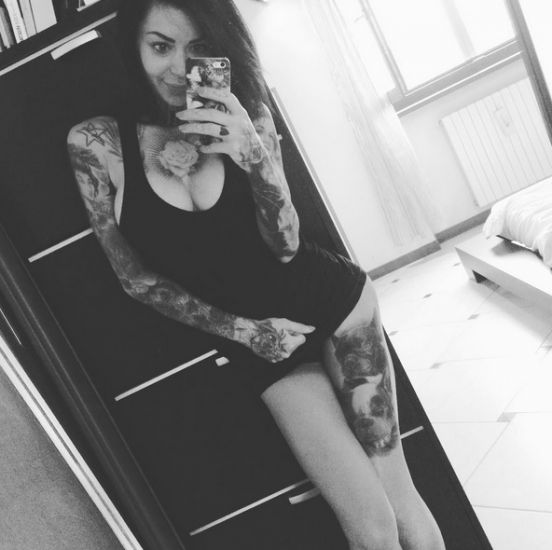 Un altro, che risale soltanto a poche ore fa, è una foto che la ritrae tutta nuda, con due “cuoricini” a censurarle il seno, e la mano a coprire lì sotto.
