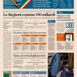 ROMA – Le prime pagine dei giornali di oggi, 1 giugno, aprono sui risultati delle elezioni regionali, ma lo spoglio è iniziato soltanto alle 23 e quindi la gran parte dei giornali ha deciso come titolare sulla base di exit poll e proiezioni. Altra notizia sulle prime pagine è l’incidente tra due piccoli aerei durante un Air Show sulle spiagge di Tortoreto (Teramo), prima dell’esibizione delle Frecce tricolori.