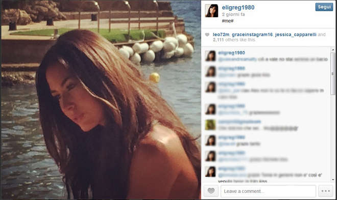 “Meravigliosamente bella statuaria dolce” e “Donna strepitosa” sono solo alcuni. E in effetti Eli si presenta più in forma che mai: “Shooting on the beach!!! Let’s rock!!!”, commenta la showgirl che, oltre che in topless, è in posa con i capelli più lisci del solito.
