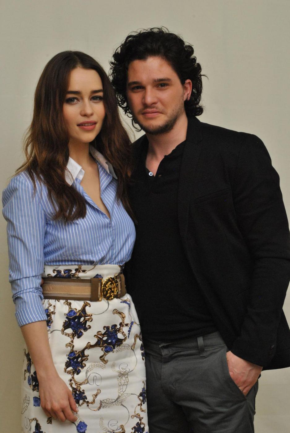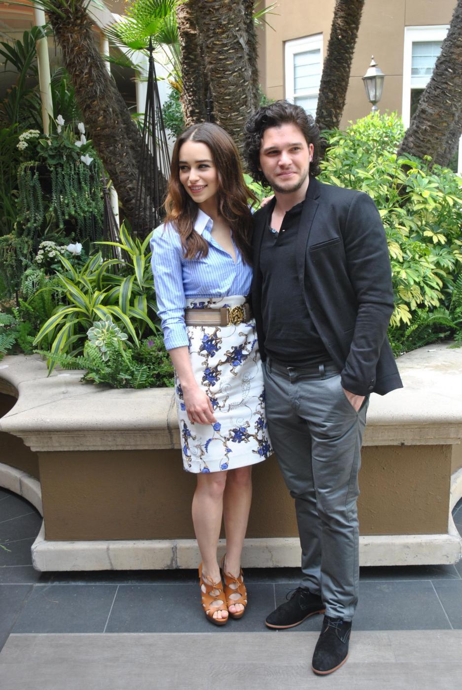 Emilia Clarke and Kit Harington at the Hollywood Foreign Press Association press conference for the television show "Game of Thrones" held in Los Angeles, CA on March 18, 2013. Photo by: Yoram Kahana_Shooting Star. NO TABLOID PUBLICATIONS. NO USA SALES UNTIL JUNE 19, 2013. LaPresseOnly Italy