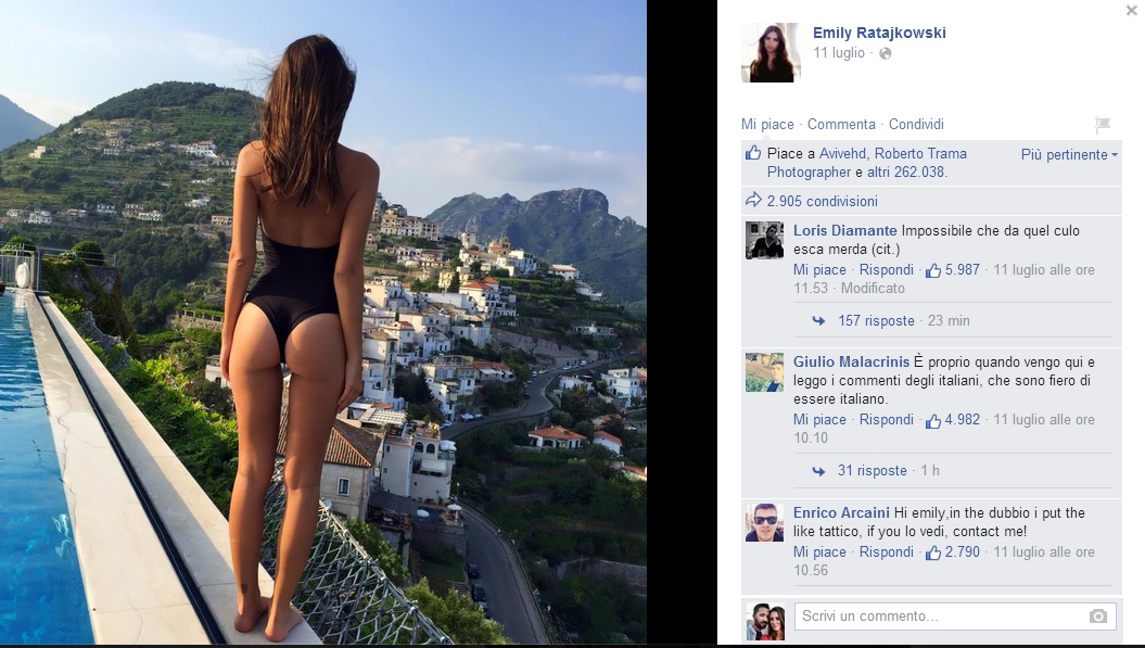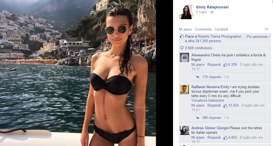 Testimonial di molti marchi di moda, sembra che gli uomini italiani apprezzino Emily soprattutto per la sua avvenenza. Basta leggere, infatti, i commenti postati sul suo profilo Facebook.