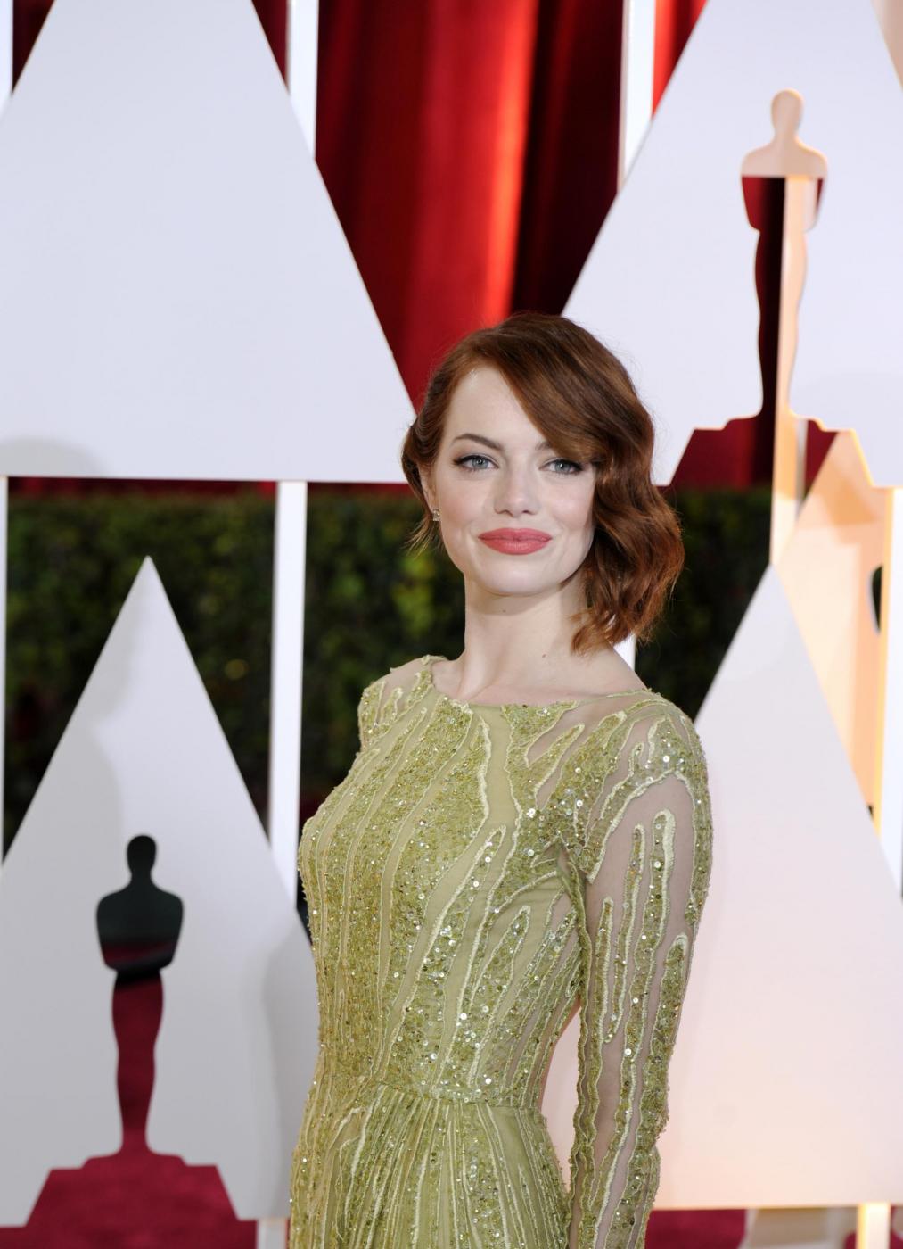 Emma Stone รจ stata candidata all’Oscar come attrice non protagonista nel pluripremiato film di Alejandro Gonzรกlez Iรฑรกrritu, Birdman. Alla fine la statuetta per la migliore attrice non protagonista รจ andata aย Patricia Arquette per il film Boyhood. (foto Lapresse).