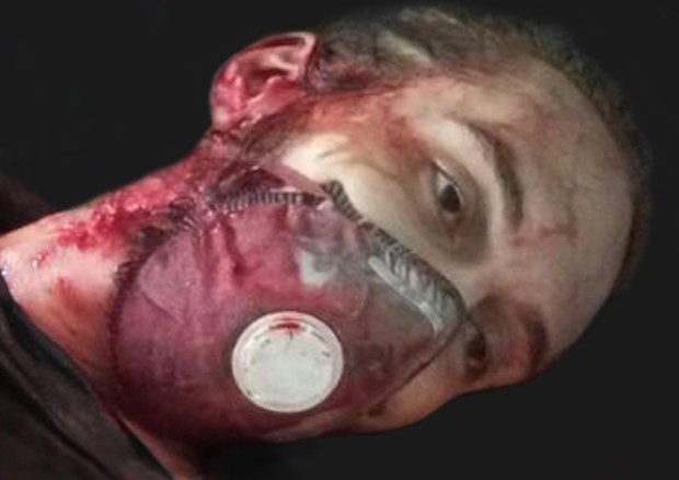 L’uomo corre verso i pompieri con l’apparente intenzione di ferirli, poi lo si vede stramazzare dopo essere stato colpito dagli agenti di polizia, questi ultimi fuori dall’angolazione di ripresa della telecamera.