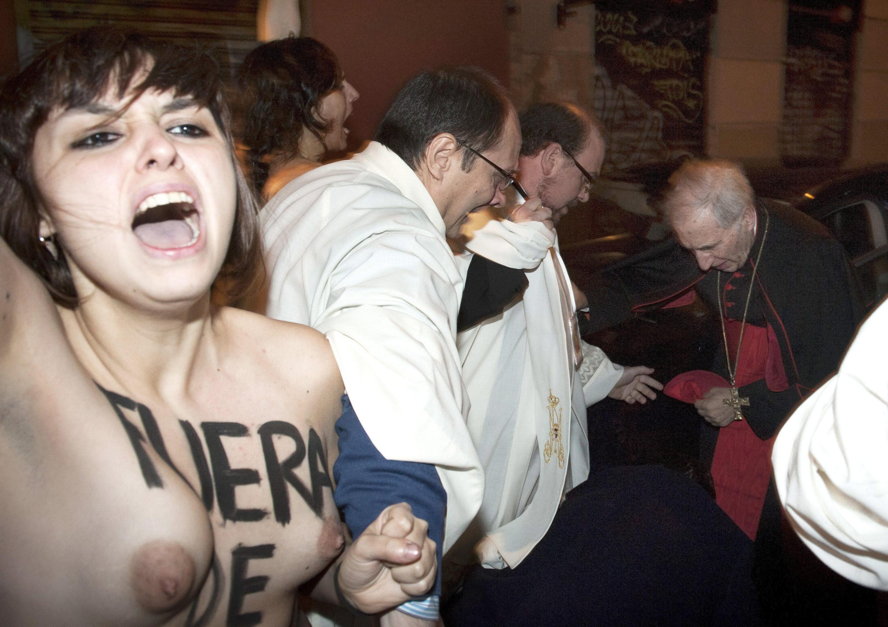 L’episodio è avvenuto la sera di domenica 2 febbraio mentre Varela entrava nella chiesa di San Justo e Pastor per celebrare la messa. La protesta del gruppo femminista segue di un giorno quella di alcune decine di migliaia di donne spagnole contro il progetto di riforma della legge sull’aborto, approvato dal governo conservatore di Mariano Rajoy.