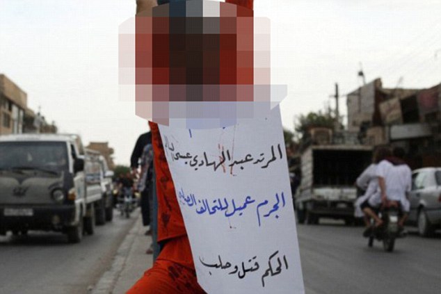 L’uomo, che secondo l’agenzia ABNA si chiamava Abdulhadi Essa al-Salem, è stato colpito al cuore e poi finito con un colpo di pistola in testa. Infine l’uomo è stato crocifisso, tutto sempre davanti a centinaia di gente che osservava come si trattasse di uno spettacolo. Le foto sono state diffuse su Twitter dal gruppo di attivisti “Raqqa is Being Slaughtered Silently”.