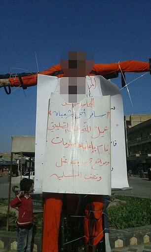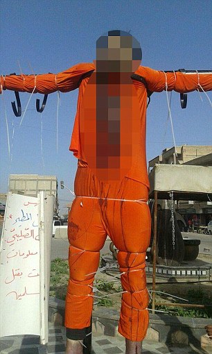 Stavolta, come si vede dalle foto, ad essere uccisi e crocifissi sono stati due uomini. “Spie siriane” secondo i fanatici dell’Isis. Motivo sufficiente per ucciderli, vestirli di arancione (il colore che Isis usa abitualmente quando uccide ostaggi stranieri), e crocifiggerli con una serie di ganci. I due, riporta sempre il Mail citando attivisti per i diritti umani, sono stati uccisi con colpi di pistola e poi esposti in quel modo.
