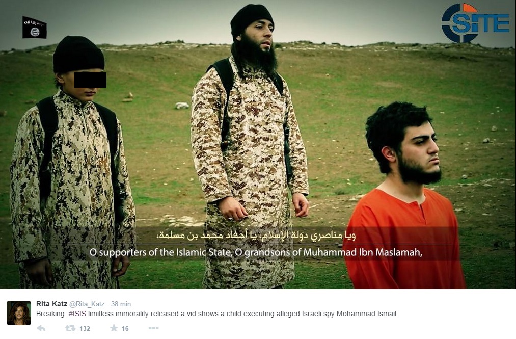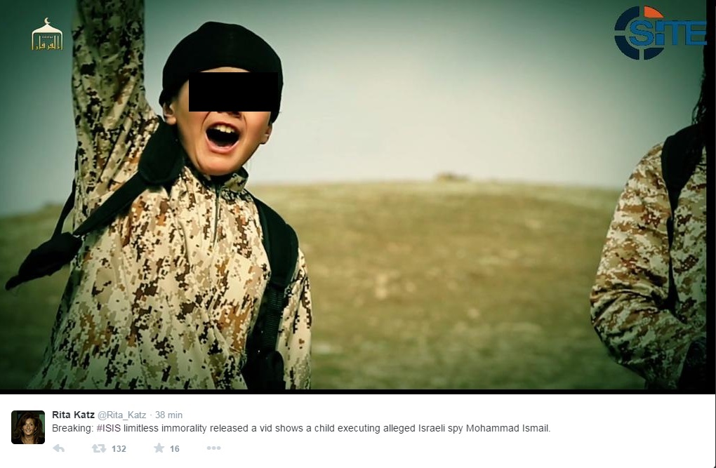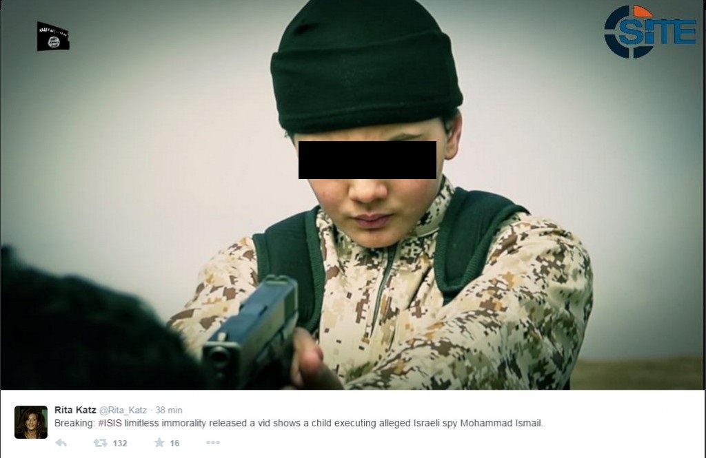 ROMA – L’Isis ha diffuso un nuovo video in cui mostra un bambino, in tuta mimetica e a volto scoperto, che uccide a colpi di pistola una presunta spia del Mossad, il palestinese Mohammad Ismail. Lo riferisce Rita Katz, direttrice del Site, su Twitter pubblicando alcuni fotogrammi.