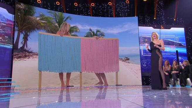 Una simpatica gag organizzata ad arte da Venier e da Signorini che poi hanno svelato di non essere nudi: Mara indossava un colorato pareo e Alfonso un gonnellino in stile hawaiano.