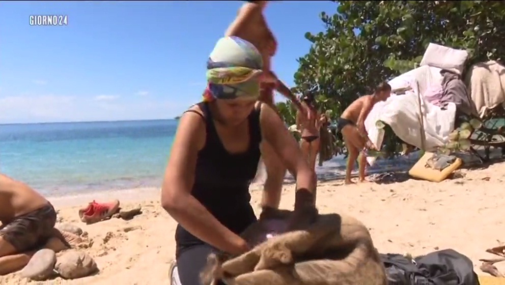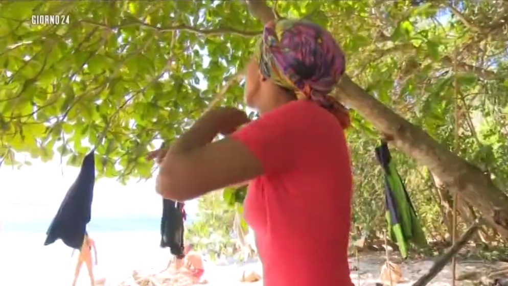Mentre Rachida si lamenta per la perdita del costume, qualche naufrago ride, qualche altro sghignazza: lei d’altronde dà la colpa a loro, che di rimando incolpano il vento. Subito l’amico Rocco Siffredi, che già l’aveva consolata dopo le liti e i momenti di sconforto sull’isola.