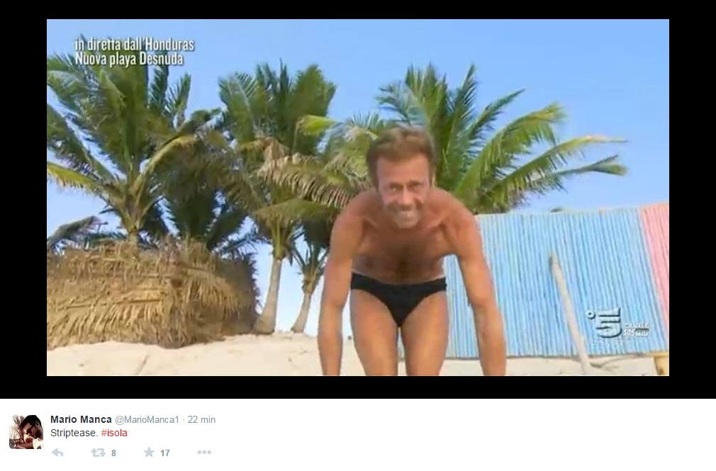 ROMA – Il 63 per cento del pubblico ha deciso: Rocco Siffredi è eliminato dall’Isola dei Famosi. Il televoto ha sancito il suo ritorno in Italia, ma a Rocco viene data un’altra possibilità e non torna a casa. Viene destinato a Playa Desnuda dove puo’ rimanere in corsa insieme agli altri eliminati, a patto però di spogliarsi.