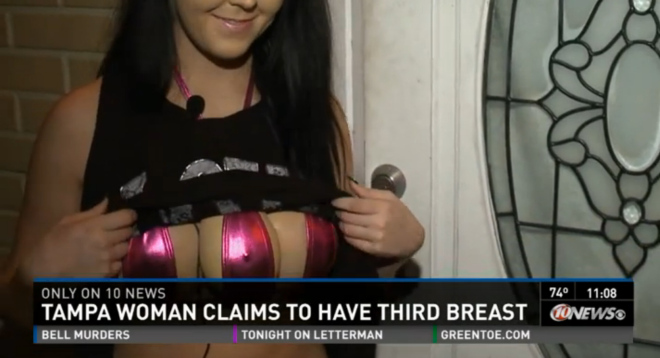 MIAMI – Alisha Jasmine Hessler è stata arrestata perché guidava in stato d’ebbrezza a Tampa, in Florida. E dal report della polizia risulta che il suo “terzo seno” è solo un fake. Per la polizia il terzo seno della 21enne americana è solo una protesi. La Hessler, che si fa chiamare Jasmine Tridevil, racconta il Daily Mail, ha un corpo perfettamente normale, senza nessun “terzo incomodo” sul suo petto. Solo qualche settimana fa era sorto il dubbio che fosse tutta una messa in scena. Infatti, la polizia aeroportuale di Tampa, aveva segnalato il ritrovamento di un bagaglio con una protesi con tre seni, appartenente proprio a Jasmine Tridevil. E l’arresto dell’altra notte sembrerebbe un’ulteriore prova.