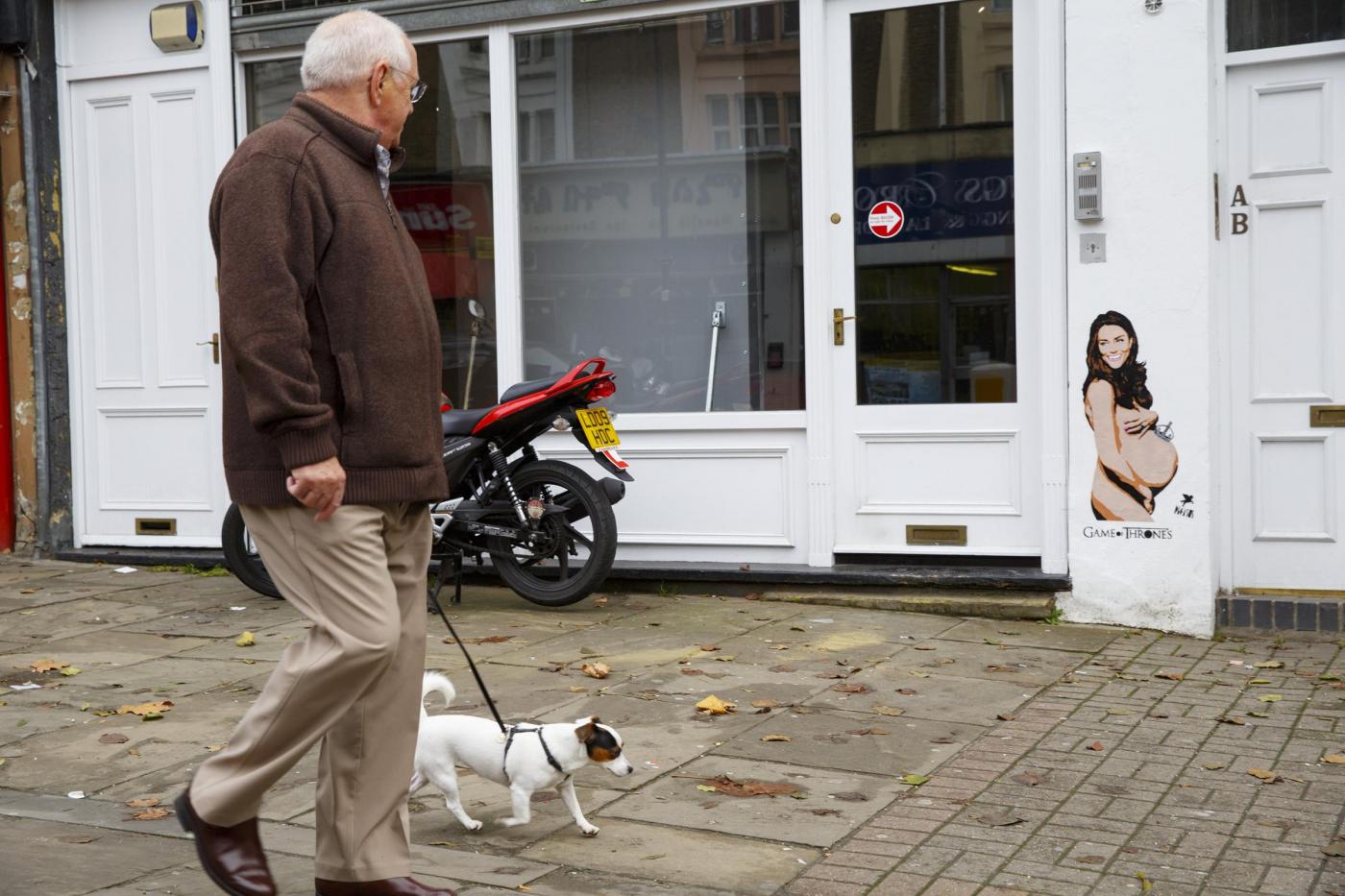 LONDRA – Kate Middleton nuda, con le mani a coprire lo stretto necessario e il pancione in bella vista. Ma è solo “street art”.