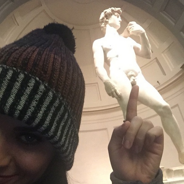 ROMA – Katy Perry viene in Italia – per il concerto al Forum di Assago – e su Instagram pubblica una serie di foto con diversi monumenti e opere d’arte italiane. La cantante pop americana si รจ fatto fotografare davanti alla Torre di Pisa, alla Venere del Botticelli agli Uffizi e al David di Michelangelo con smorfie provocatorie e sconce.