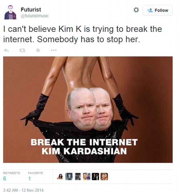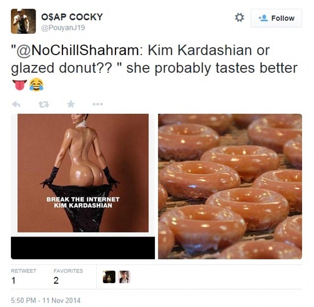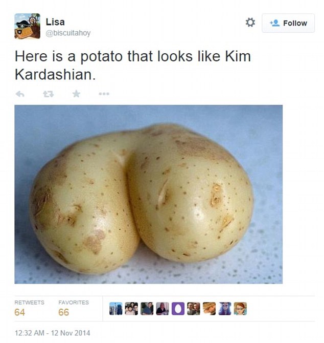 “GeneralBoles” prende il faccione di Russell Brand e lo posiziona al posto del sedere della Kardashian. Non mancano anche i prodotti alimentari; pesche patate, pomodori, ciambelle glassate. Altri ancora infine, la paragonano a una bambola Barbie: “il suo corpo è simile alla plastica”.