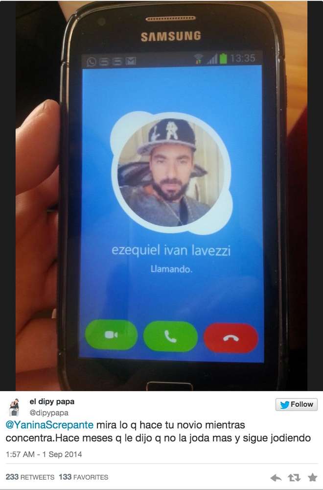 I tweet sono accompagnati dal tag della fidanzata di Lavezzi con la scritta: “Guarda cosa combina il tuo compagno”.