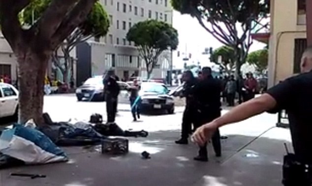Nel video visibile cliccando qui, non si riesce esattamente a capire cosa sia successo. Si vede un uomo che cerca di prendere a pugni quattro poliziotti e due altri agenti che corrono in loro aiuto. Mentre il senzatetto viene buttato a terra, il video mostra una donna in primo piano che raccoglie un manganello della polizia e alcuni agenti che corrono verso di lei per fermarla. La scena copre parzialmente ciò che succede nel frattempo sullo sfondo, dove l’uomo è ancora a terra, ma si sente una voce gridare “giù la pistola” quattro volte prima che vengano sparati cinque colpi di arma da fuoco. A quel punto i poliziotti, che erano stati chiamati sul luogo per una rapina, si allontanano dal senzatetto che giace sul marciapiede. Un comandante della polizia ha detto che uno dei tre agenti che hanno sparato è un sergente. Secondo la Abc news i tre sono stati sospesi in attesa dell’esito delle indagini. A seguire le immagini di quanto accaduto, sconsigliate ad un pubblico sensibile.