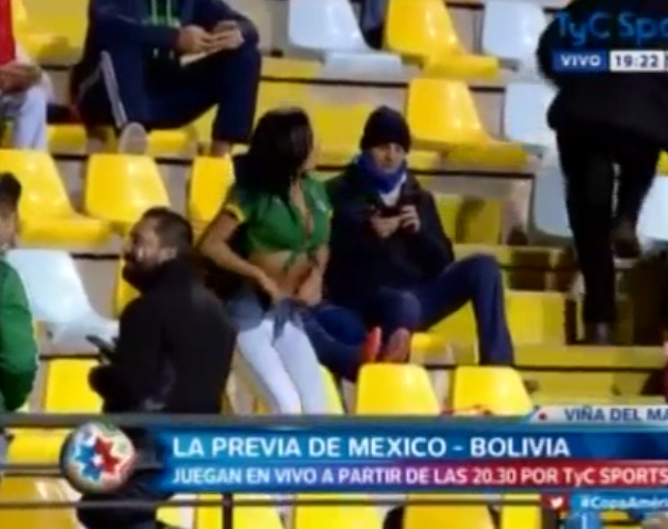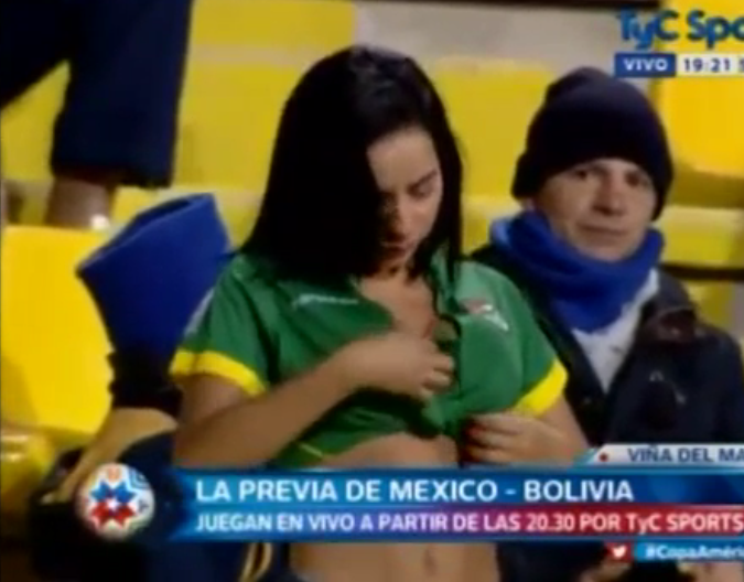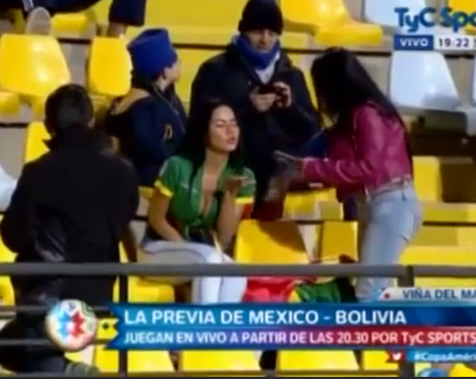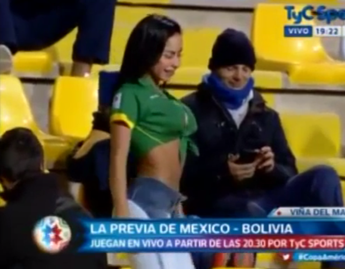 La Bolivia non è andata oltre allo zero a zero contro il Messico e ha anche sofferto per larghi tratti del match ma i tifosi sono stati consolati dalla visione della bellissima Maite Flores. Lei sicuramente ha ‘stravinto’ la partita contro le ‘colleghe’ messicane. Ecco le foto della sexy Maite Flores, una delle più amate dal popolo del web.