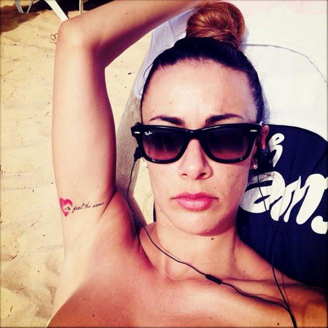 Capelli sciolti e poco lenzuolo che copre il decolleté. Le spalle sono nude e in vista che fanno capire che alla Toniolo, dormire con la biancheria intima non le piace proprio: