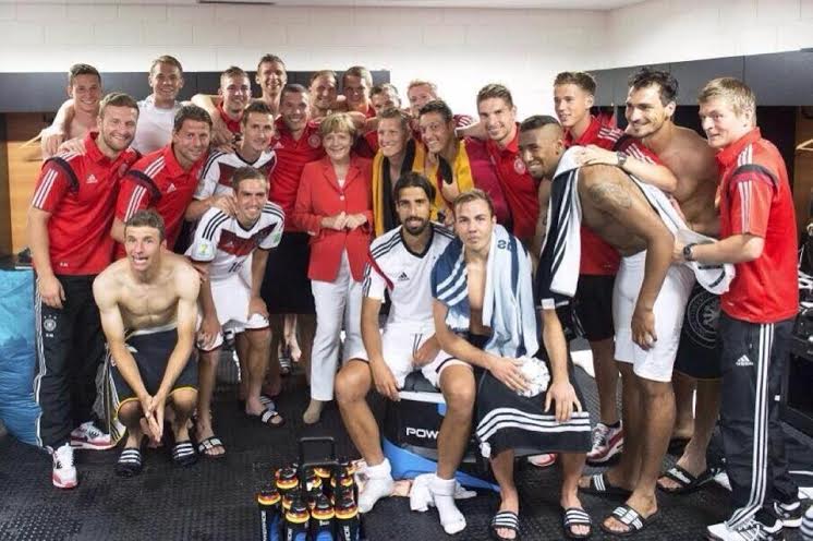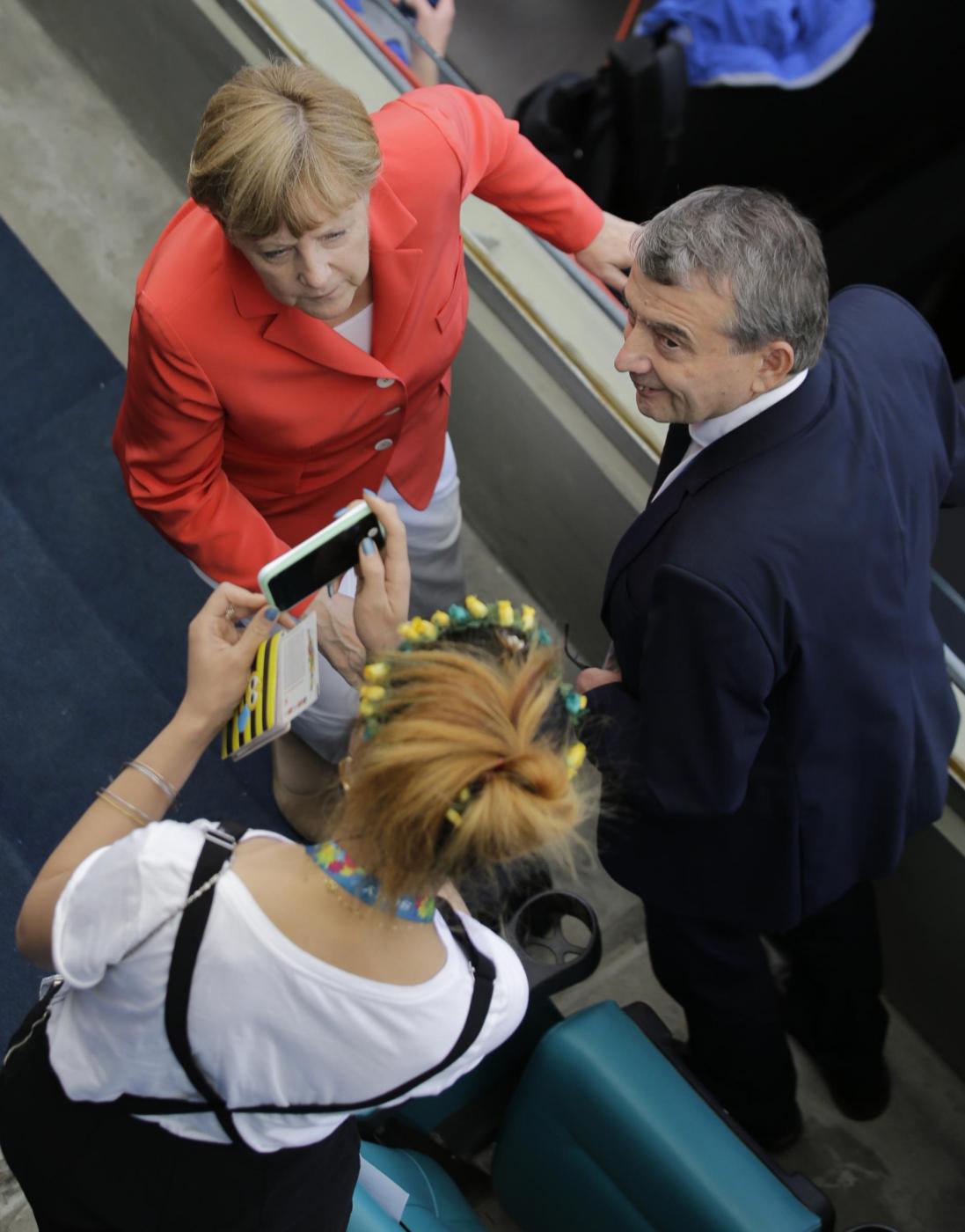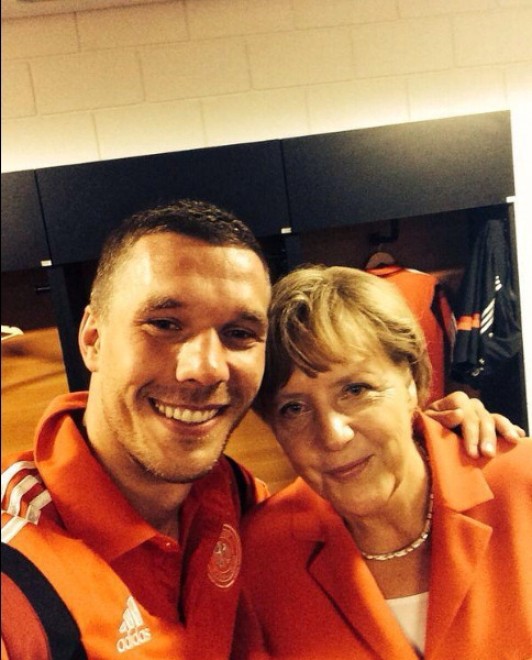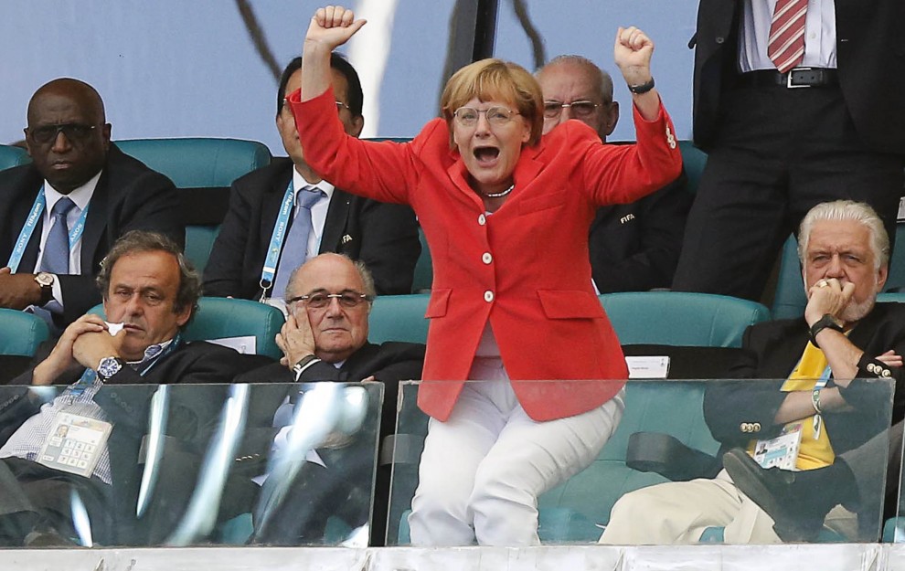 La Schaefer si trovava a Berlino per la presentazione del proprio calendario. Ha approfittato della concomitante partita dei tedeschi contro il Portogallo per indossare la stessa mise della Merkel.
