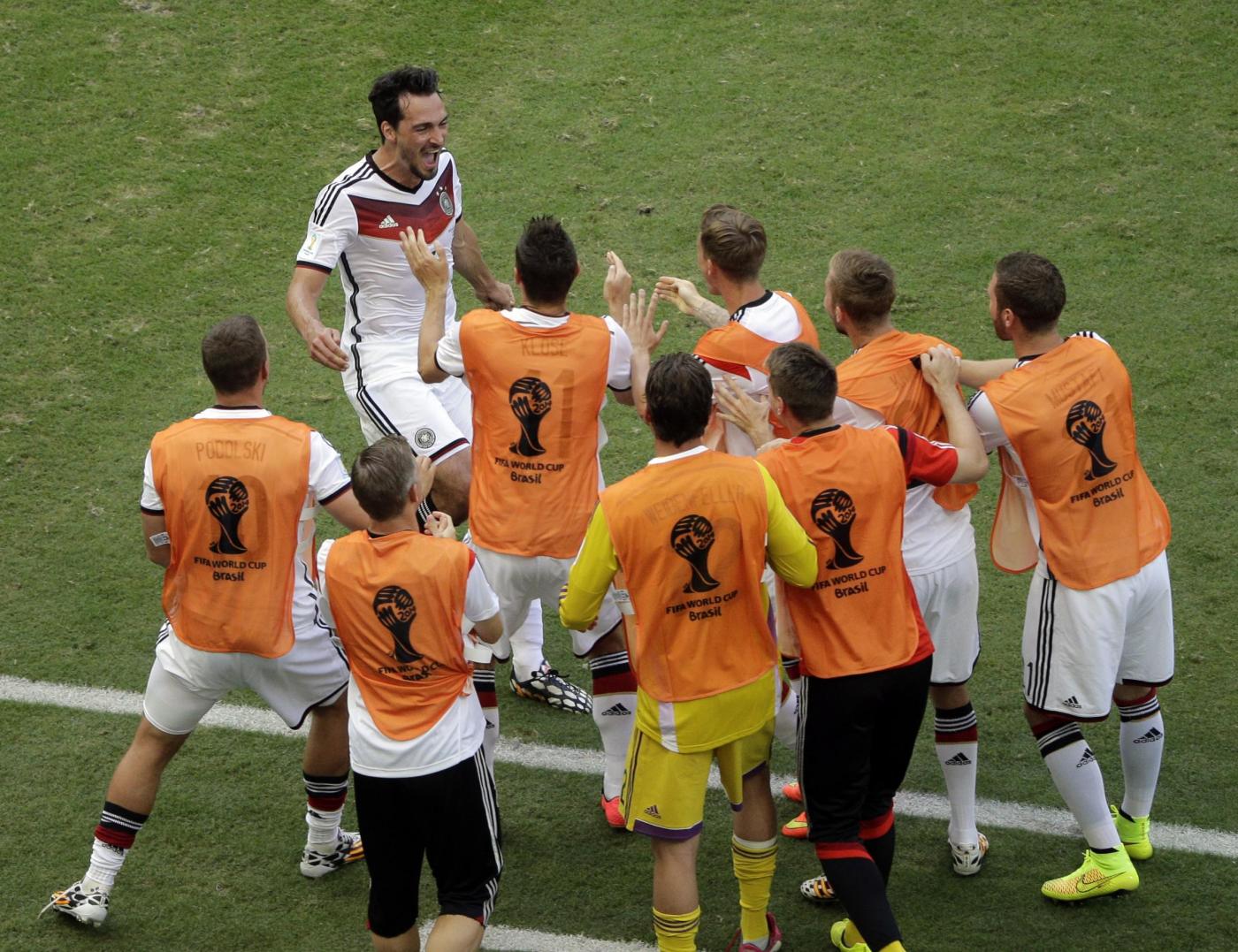 La Schaefer ĆØ anche la madrina della nazionale tedesca: prima della partenza per il Brasile ha posato davanti alla porta di Brandeburgo “coperta” solo da micro-palloni.