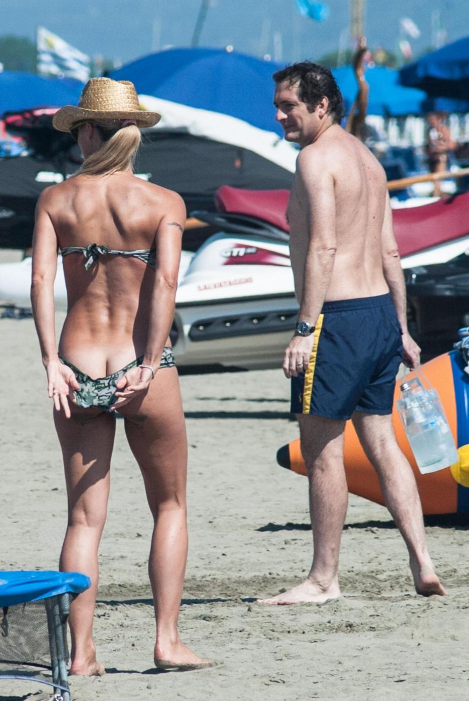 I paparazzi, ovviamente, non aspettavano altro e hanno subito immortalato la sequenza sexy. Michelle sfoggia un fisico perfetto, incredibile pensare che abbia partorito la sua ultima bambina solo 4 mesi fa. (Foto Lapresse).