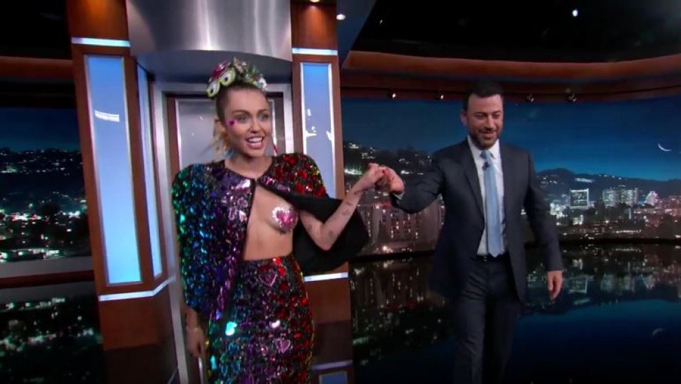 ROMA – Mancano due giorni agli Mtv VMA e Miley Cyrus non sta più nella pelle. La popstar, ospite al Jimmy Kimmel Live, ha parlato della sua prossima esperienza da conduttrice ma soprattutto ha dato spazio ai suoi look fantasiosi. Questa volta la bionda irriverente si è presentata con orecchie da coniglietta, t-shirt multi-color e pantaloncini jeans. Sul viso, strass, cuoricini e altri simpatici accessori, tutti colorati come i suoi rasta, a tratti biondi, a tratti arcobaleno.