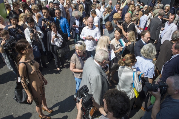 A questo punto, racconta il giornale svizzero Le Matin, l‘artista è rimasta nei pressi della fiera a conversare con i passanti: