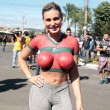 L’avvenente tifosa del Portogallo indossava esclusivamente dei leggins e non aveva la maglietta. Il body painting, da solo, non è stato sufficiente a coprire il suo seno dallo sguardo interessato degli altri tifosi presenti.