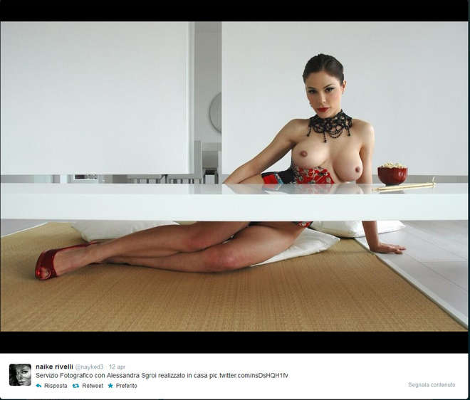 La Rivelli, che era stata già bannata da Instagram per le foto troppo sexy, ha trovato in Twitter un degno social network per mostrarsi ai suoi fan. E così dopo aver pubblicato su Twitter il video di un bagno alle terme, rigorosamente nuda e con sedere in primo piano, ora arrivano gli scatti direttamente dalla sua casa.