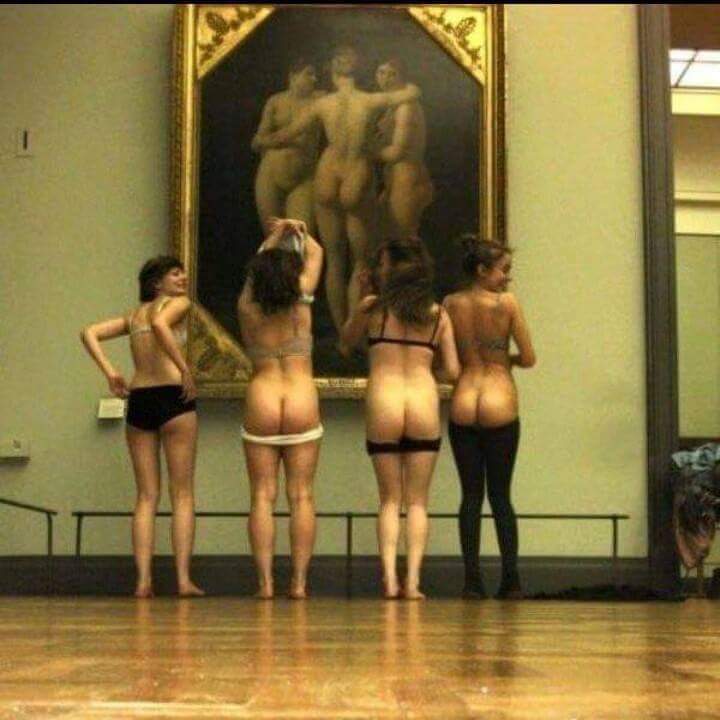 Nella foto appaiono quattro ragazze che riproducono il quadro che hanno davanti tirandosi giù le mutande. Antonio Manfredi, il direttore del museo di arte contemporanea, dopo aver pubblicato la foto ha scritto che su Facebook