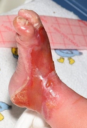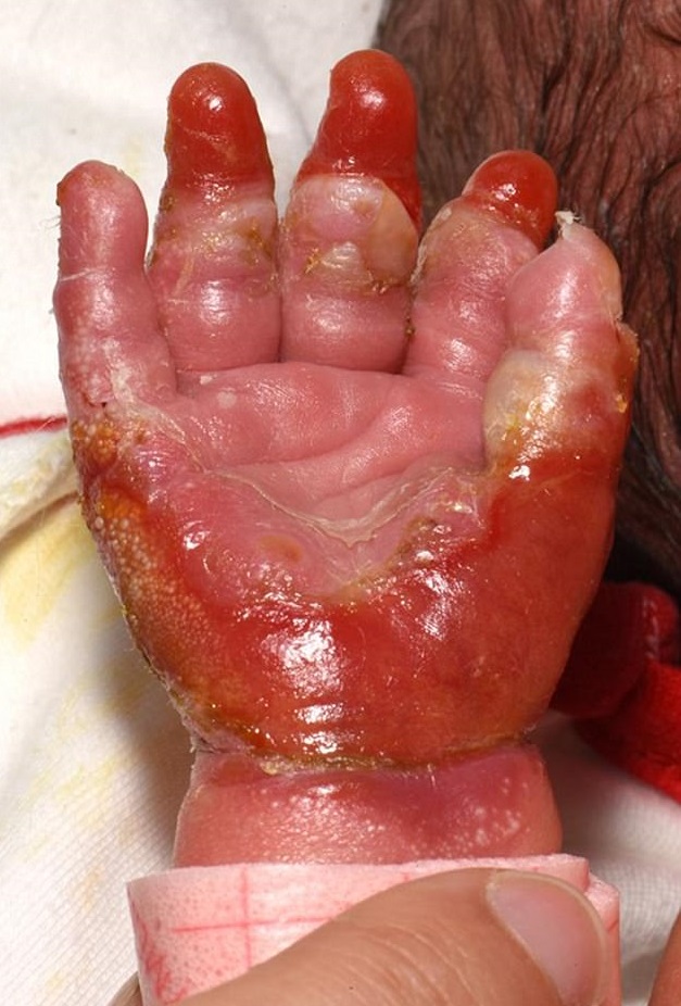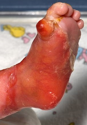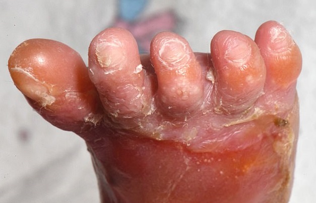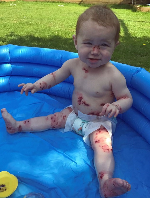 Il 90% dell’epidermide di mani e piedi di Pippa è assente e il problema si sta diffondendo nel resto del corpo. Per impedire che incorra in infezioni letali, alla piccola vengono fatti dei bendaggi. “Quando è nata, sembrava che qualcuno le avesse immerso mani e piedi nell’acqua bollente. Dalle bolle affiorava la carne viva ed è stata ricoverata in terapia intensiva.