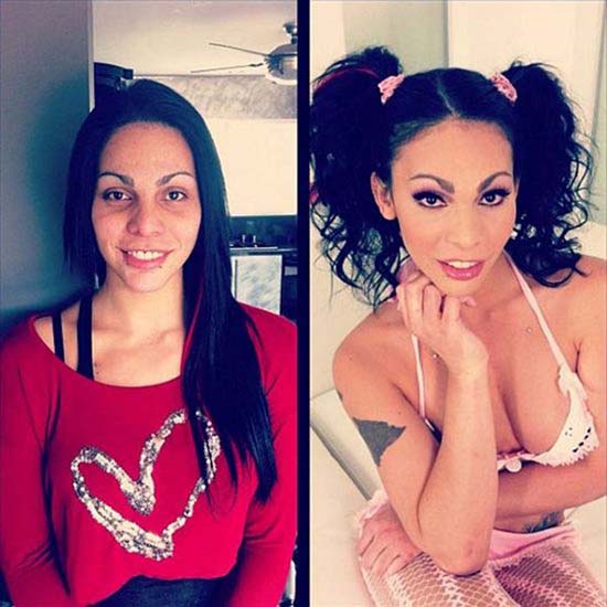 LOS ANGELES (STATI UNITI) – Photoshop per le modelle, make-up per le attrici di film hard. In alcuni casi, il pesante trucco, può trasformare completamente il viso di una pornostar prima di andare sul set. Lo dimostra questa serie di scatti in cui decine di attrici hard si lasciano immortalare prima e dopo il make-up.