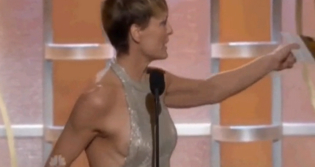 LOS ANGELES – Durante la 71esima edizione dei Golden Globes, Robin Wright, l’attrice ex moglie di Sean Penn, ha avuto un piccolo “wardrobe Malfunction”, l’incidente sexy che accade spesso, durante le serate di gala delle star.