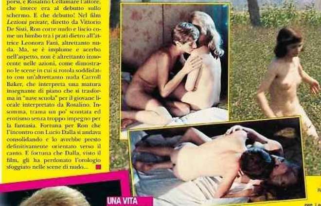 Il passato di Rosalino Cellamare, che prima di diventare il cantante Ron è stato attore nel film a luci rosse Lezioni private di Vittorio Sisti. Le immagini pubblicate da Novella 2000 mostrano Ron nudo che corre tra i prati e insegue l’attrice Leonara Fani, mentre in un’altra scena si rotola con Carroll Baker. Una esperienza hard prima di diventare il Ron che tutti conosciamo.