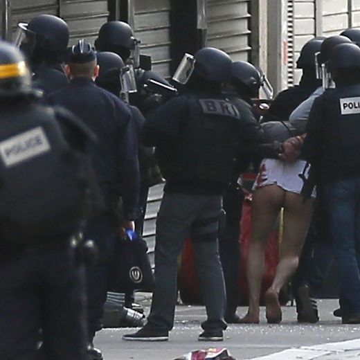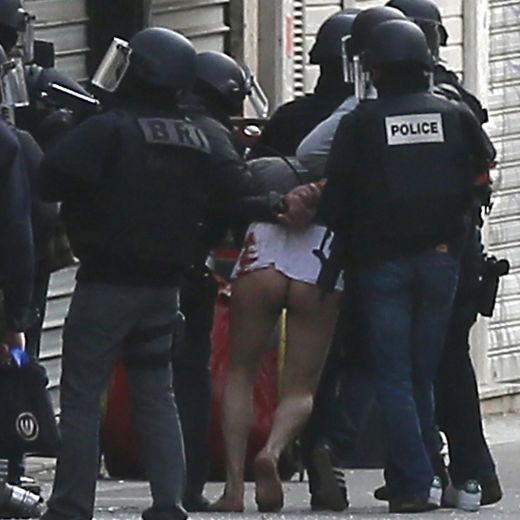 PARIGI, 18 NOV –ย ย Uno dei terroristi arrestato oggi dalla forze speciali francesi a Saint Denis รจ stato trascinato fuori dall’appartamento e portato in strada mezzo nudo,ย scalzo e senza mutande, coperto solo da una canottiera insanguinata.