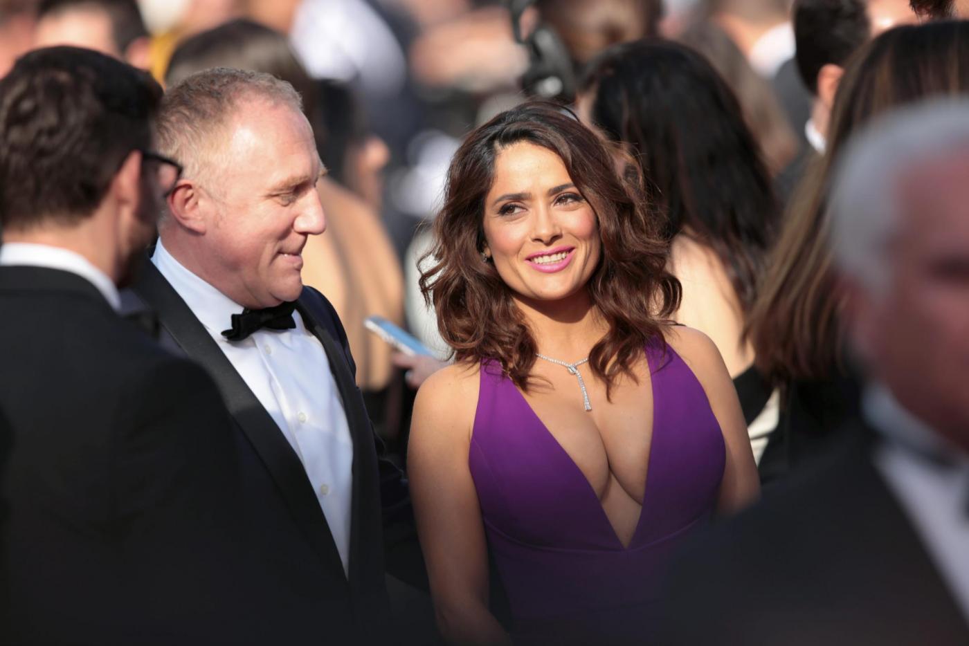 ROMA – Un bellissimo e scollatissimo vestito viola: così l’attrice messicana Salma Hayek, protagonista femminile del nuovo film di Matteo Garrone, si è presentata sul red carpet del Festival di Cannes. Scollatura profonda e gonna dritta, capelli sciolti e labbra in tinta, l’attrice messicana al braccio del marito Francois-Henri Pinault ha rubato la scena e conquistato i flash dei fotografi.