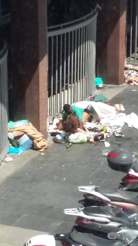 ROMA – Un uomo e una donna fanno sesso in strada tra i rifiuti su un marciapiede in pieno giorno. Siamo a Roma sotto ai portici di piazza Indipendenza: le foto, pubblicate dal sito Roma Fa Schifo , stanno facendo il giro dei social. La piazza si trova in pieno centro a Roma: come scrive Il Corriere della Sera, nella la zona ci sono diversi capolinea di autobus ed è